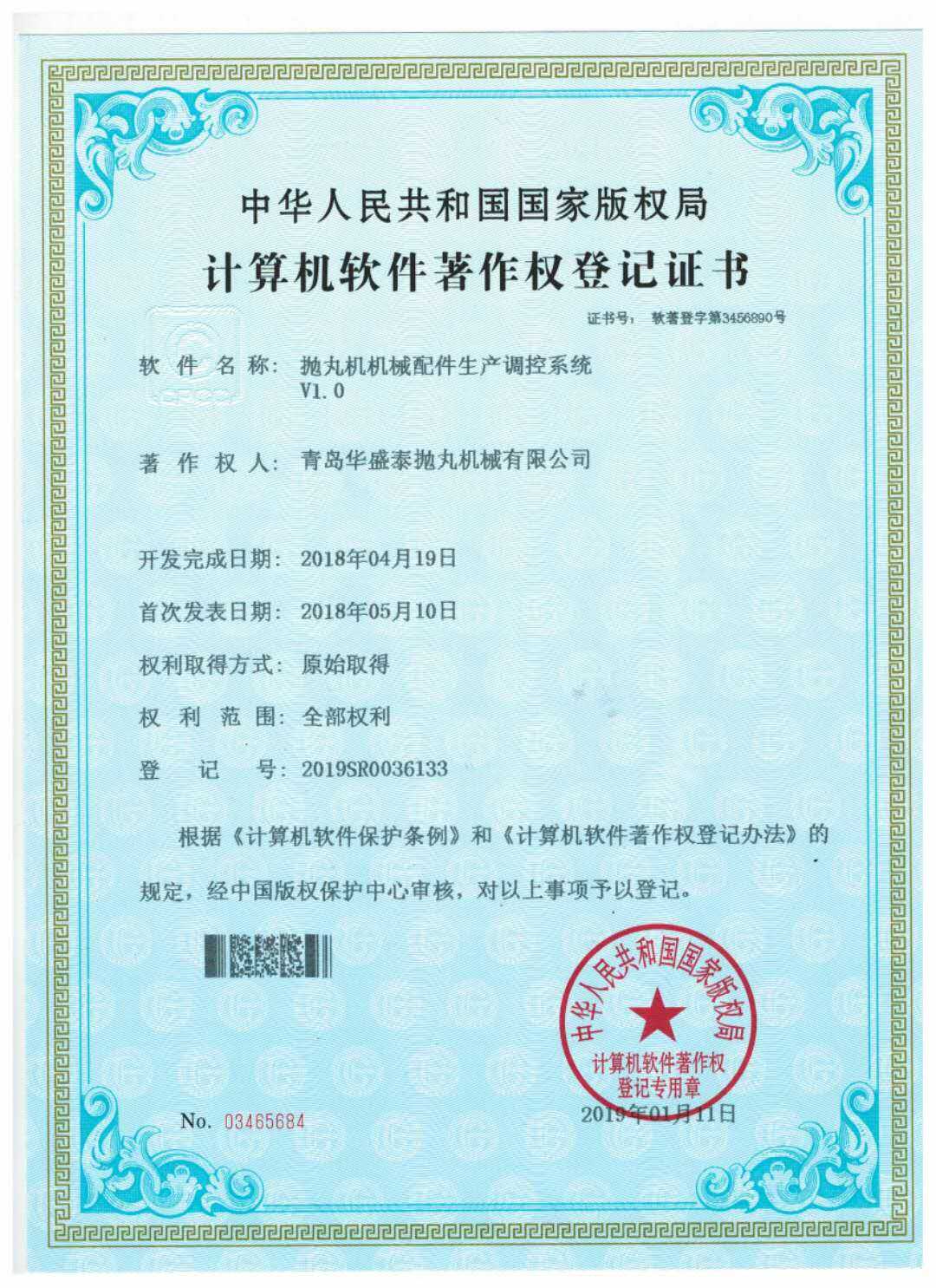 • 計算機軟件著作權登記證書