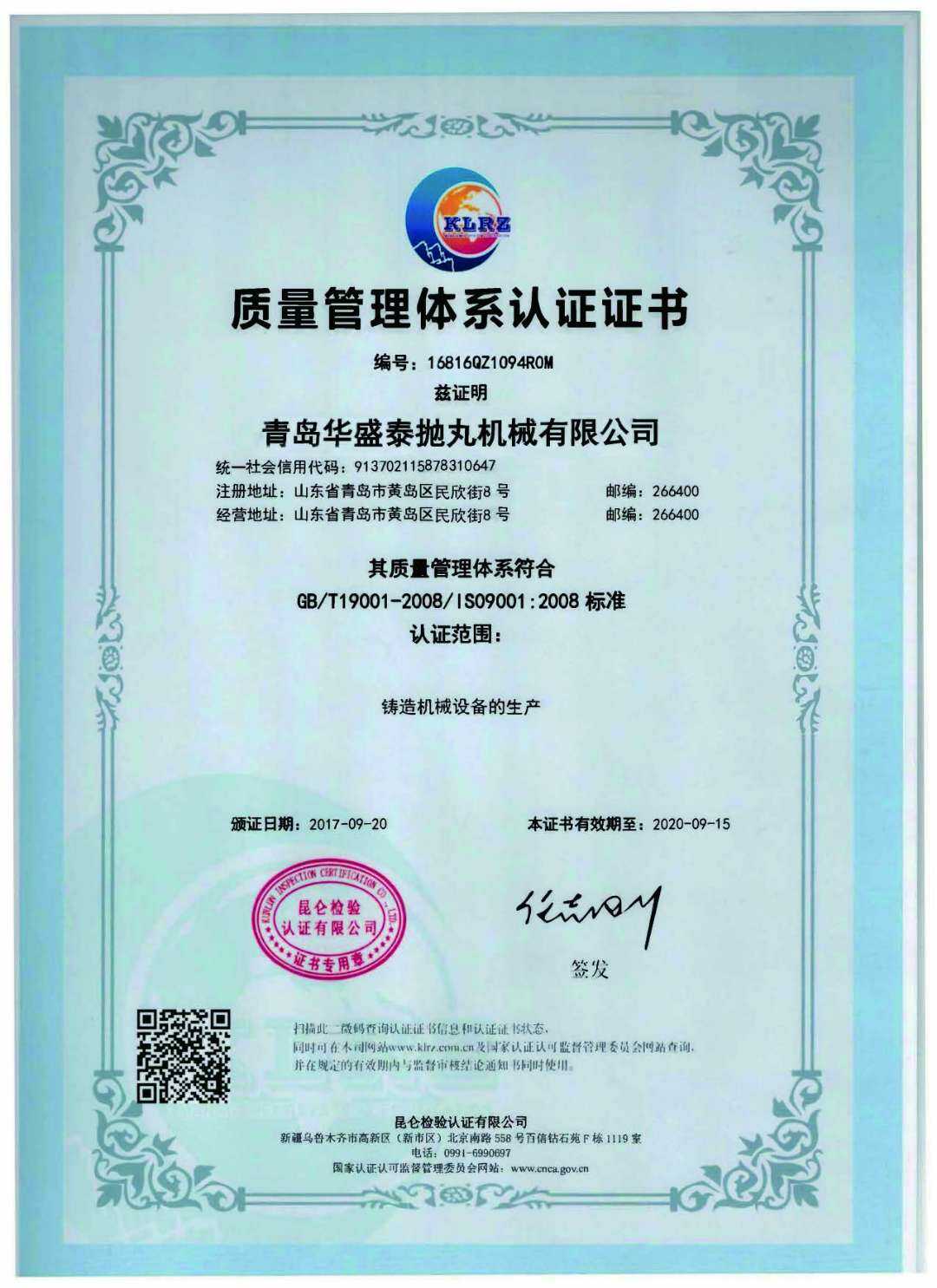 • 質量管理體系認證證書
